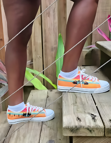 I took these Retro Explorer sneakers with me to Belize and received so many compliments. They're different, comfortable, colourful and made to order. The bright, multicolored design is accentuated by a black pleather toe cover and silver metal eyelets. Breathable nylon and foam insoles combat heat, moisture, and corrosion, so you can take as many steps as you need to meet your goals!